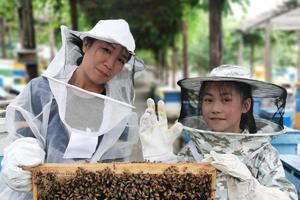 小朋友和家长要穿好防护服,由讲解员引领孩子有序进入蜂场参观,同时技术人员打开蜂箱,展示三型蜂、卵、幼虫、巢房、王台、寻找蜂王以及讲解蜜蜂不同性别的职责、寿命区别、蜜蜂酿蜜、储蜜过程、蜂粮的形态和成分、蜂蜜不变质的神奇奥秘。