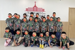 每次活动都有统一的服装及营队标识;活动全部在军博内进行,全程有老师跟随并随时清点人数。