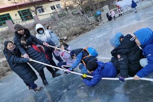 来一场趣味冰上拔河吧,看看谁在冰上的力气足够大?