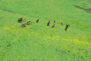 漫山遍野开放的野花和遍地的牛羊,