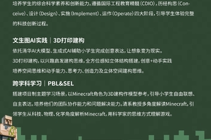 搭建项目制主题学习场景,以Minecraft角色为3D建构作模型参考,引导小学生自由联想、自主表达,培养他们的团队协作能力和问题解決能力。