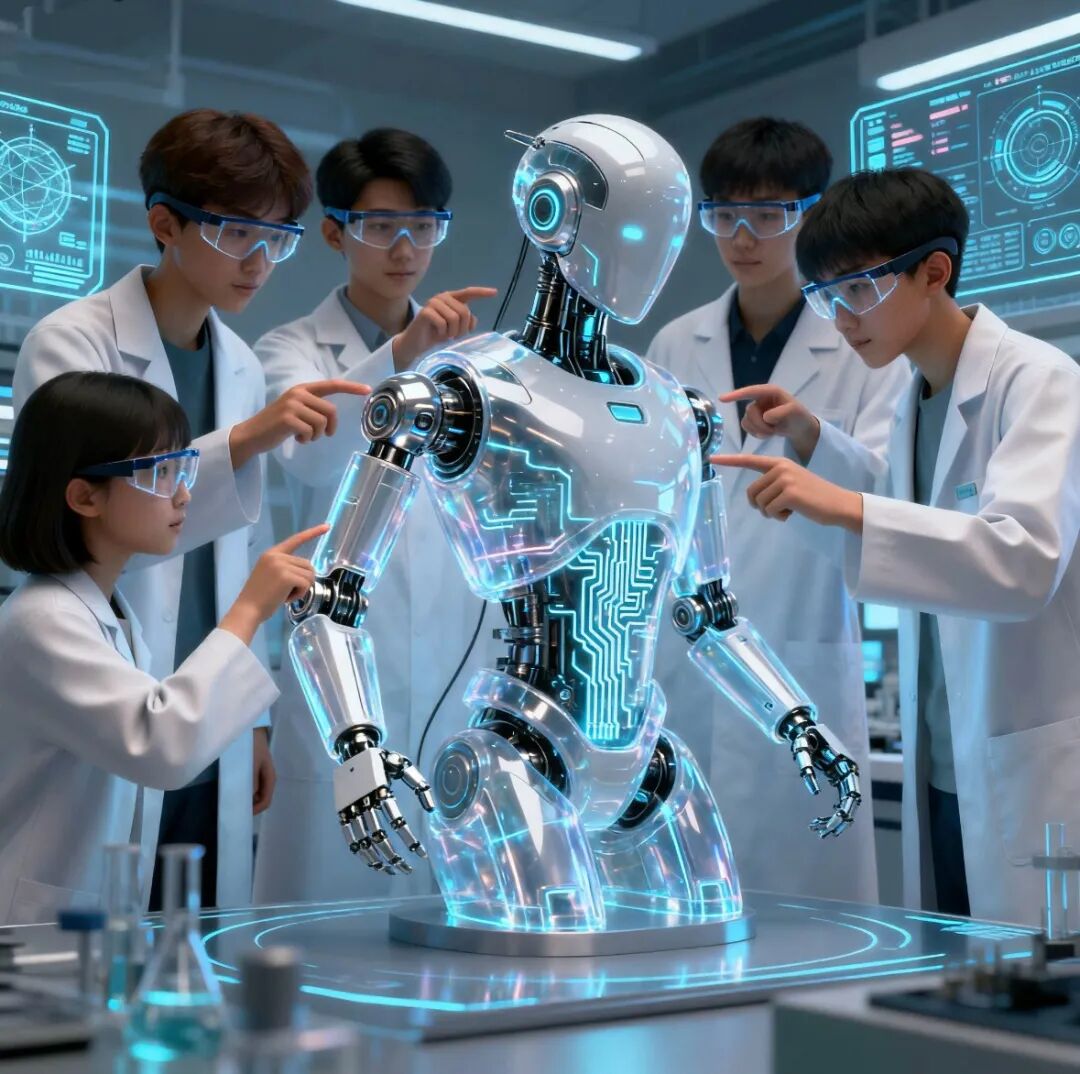 高能开场!宇树人形机器人现场亮相灵活走位、精准动作、趣味互动未来科技零距离,点燃全场科幻热情。午后参观相关院所,学习人工智能的历史发展,人工智能通识教育概念,介绍人工智能的基本概念、发展趋势、技术框架,让学生对人工智能有全面的认识。