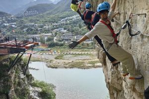 飞拉达来源于意大利语中 Via Ferrata 的音译中文,意译为“铁索攀岩”,起源于第 一次世界大战,在欧洲发明了近百年,是在欧洲广受欢迎的运动项目。
