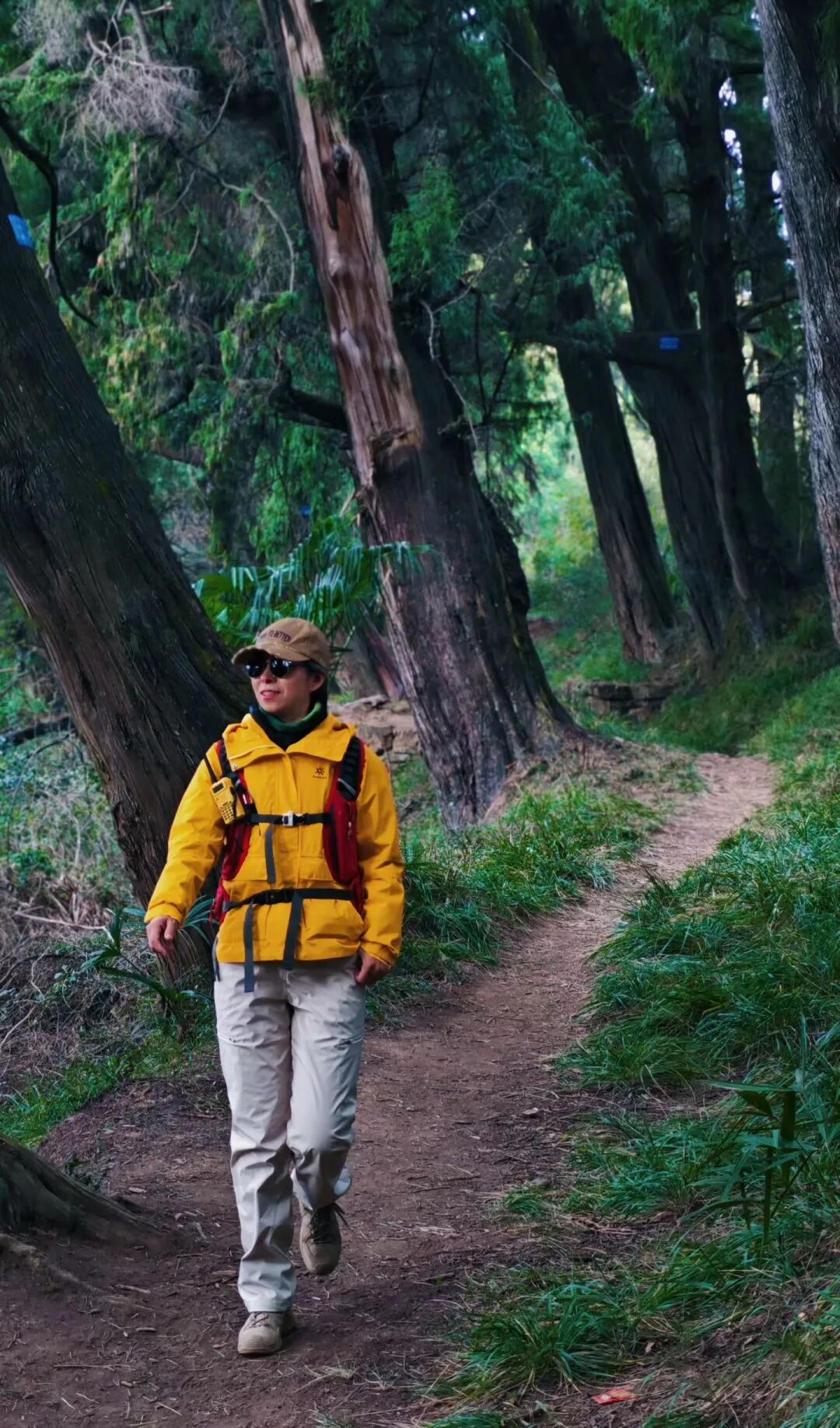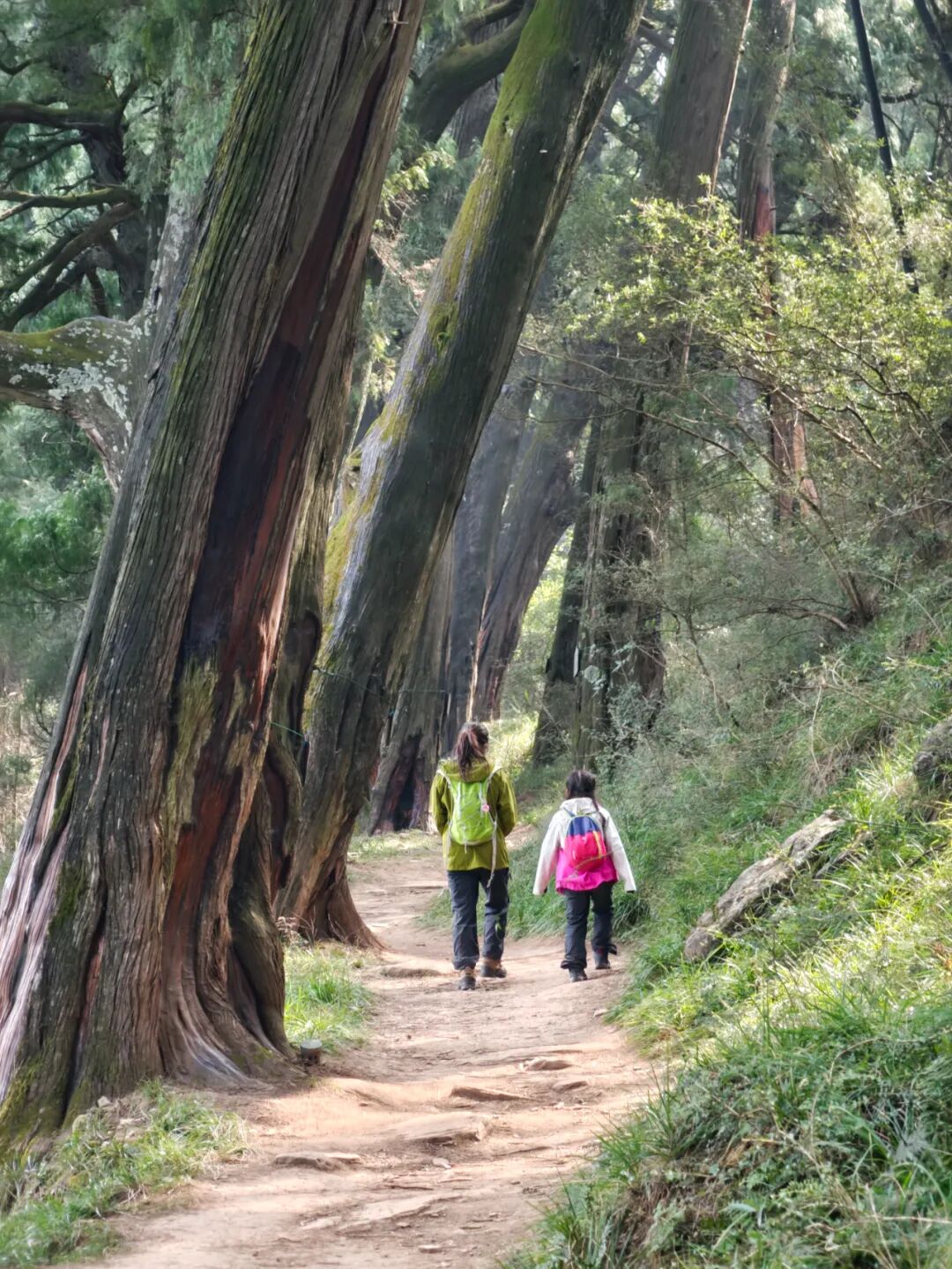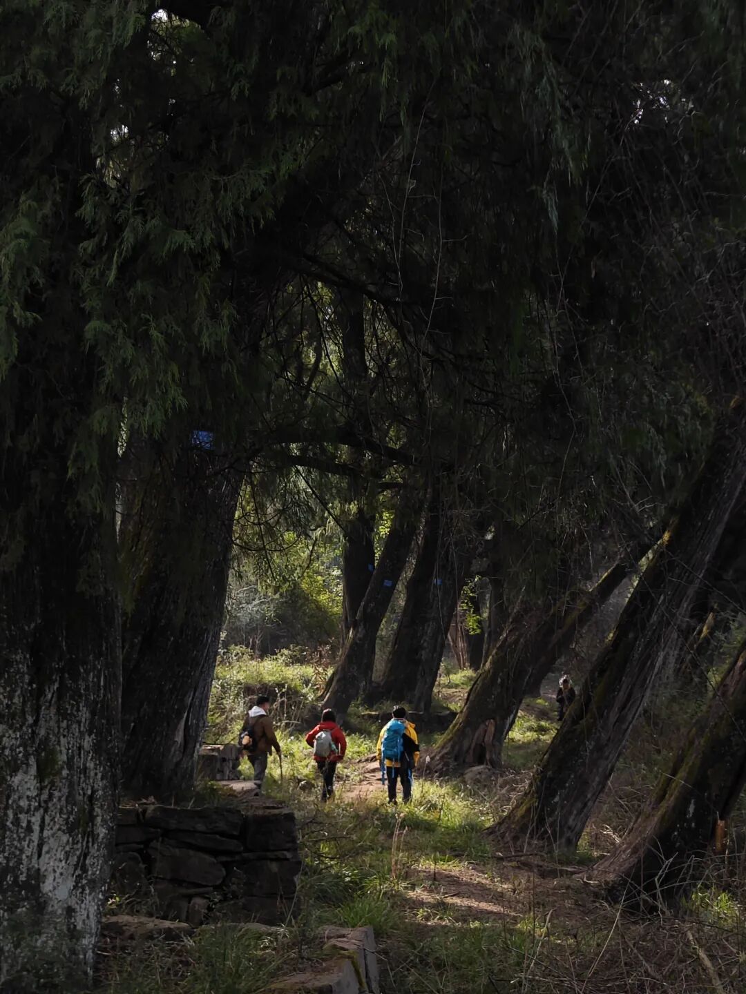 ▷ 这段路被参天古柏严密地包裹着,行走其间,犹如在一条绿色的时空隧道中穿行。