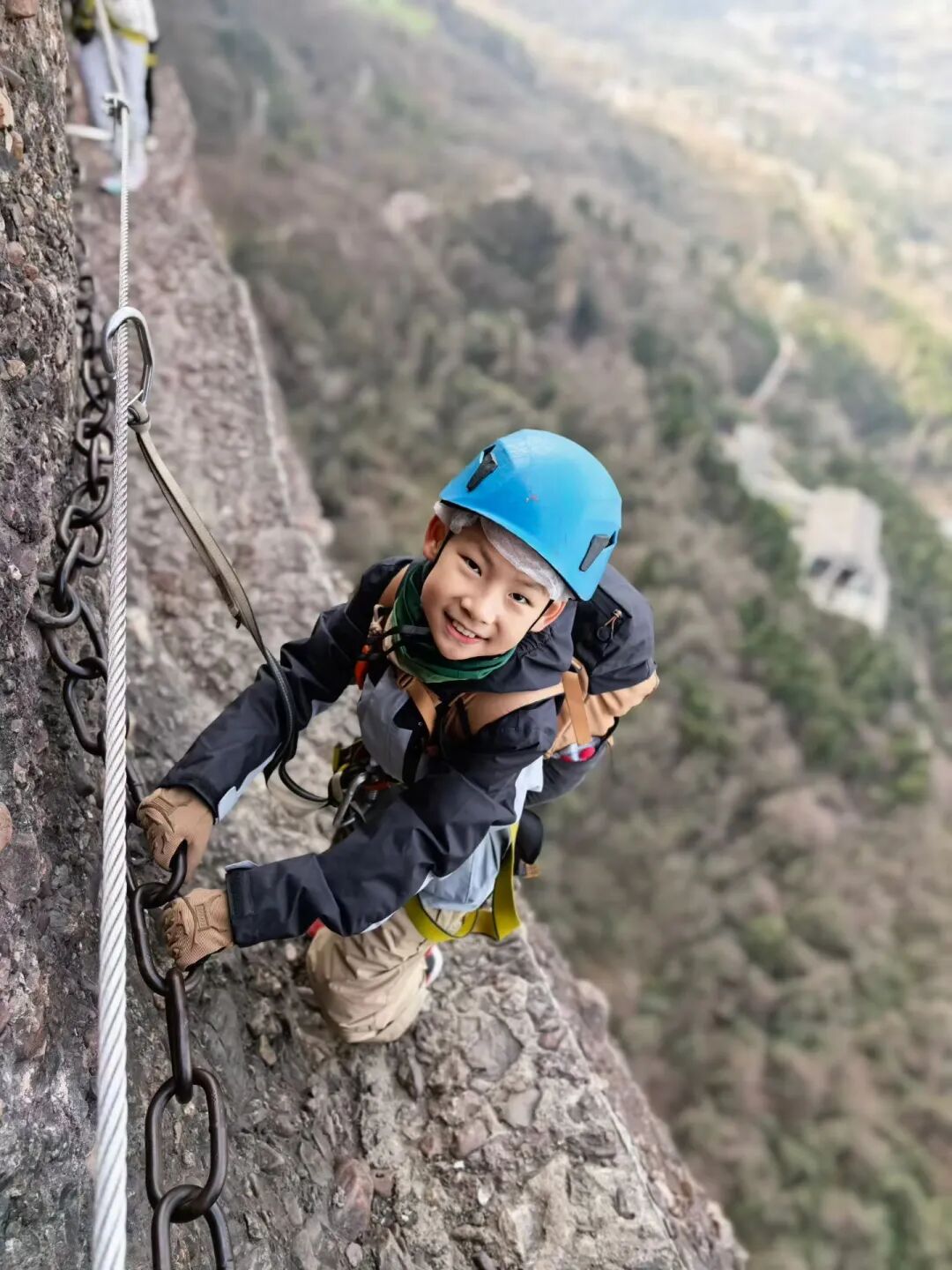 ▷ 猿猱náo道:比鸟道更惊险十倍!这是一条几乎没有路的“路”,需要佩戴专业安全设备,在近乎垂直的绝壁上攀援,堪称“飞檐走壁”,仅限身高1.5米以上、55岁以下游客体验,是对勇气和体力的终极考验。(此路线,自愿选择是否行走。)