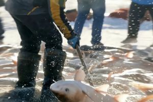 丰收·冰上运动会,起网炖鲜鱼