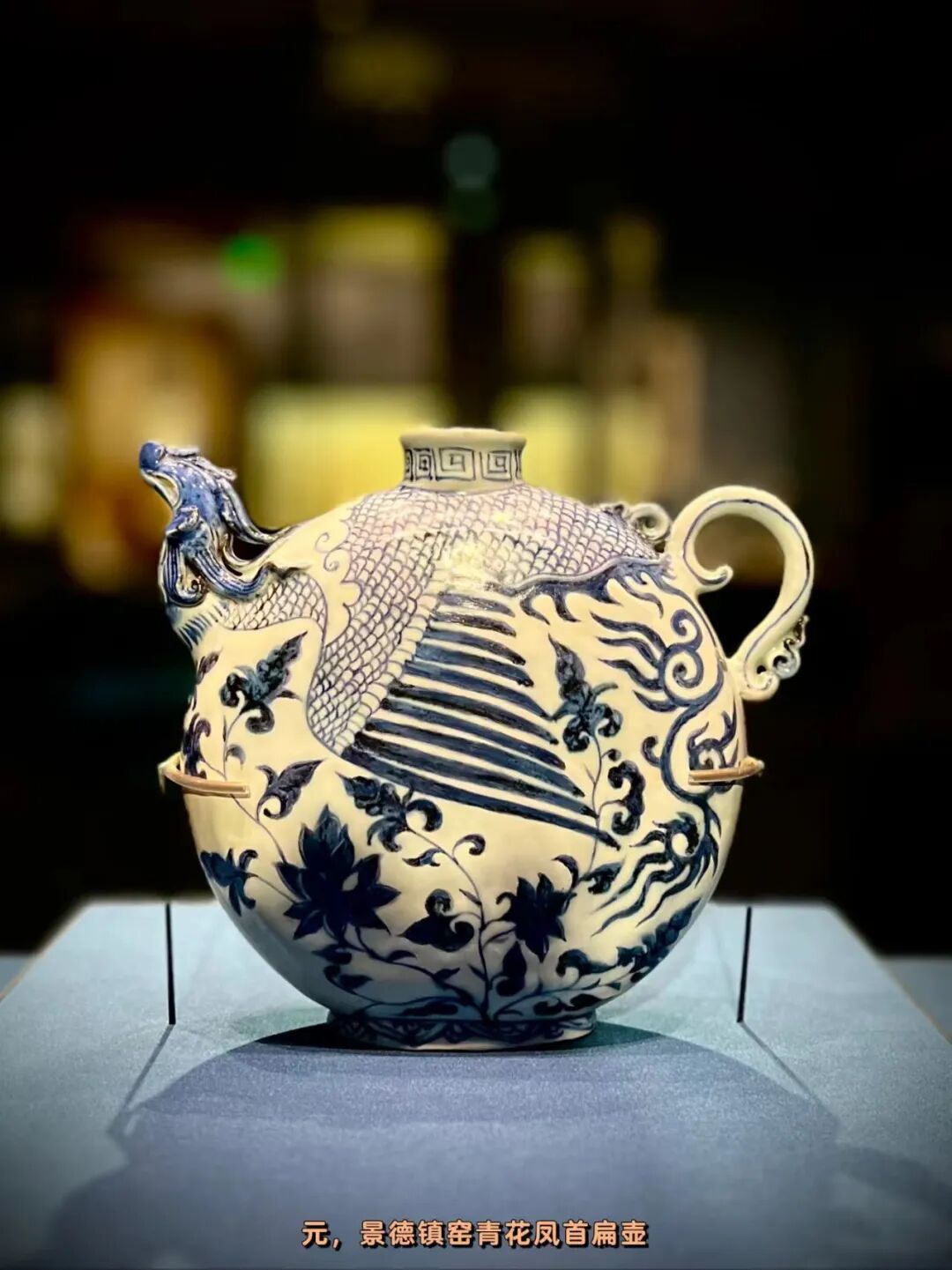 那只凤首昂起,青花的线条灵动得像在流动。