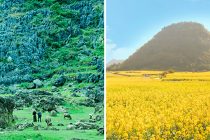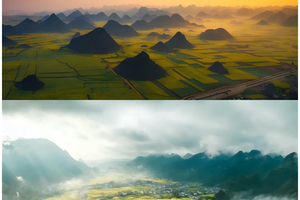 📸 拍一组“全家福”——以连绵峰林为背景,金黄花海作地毯,每一帧都是春天的礼物;