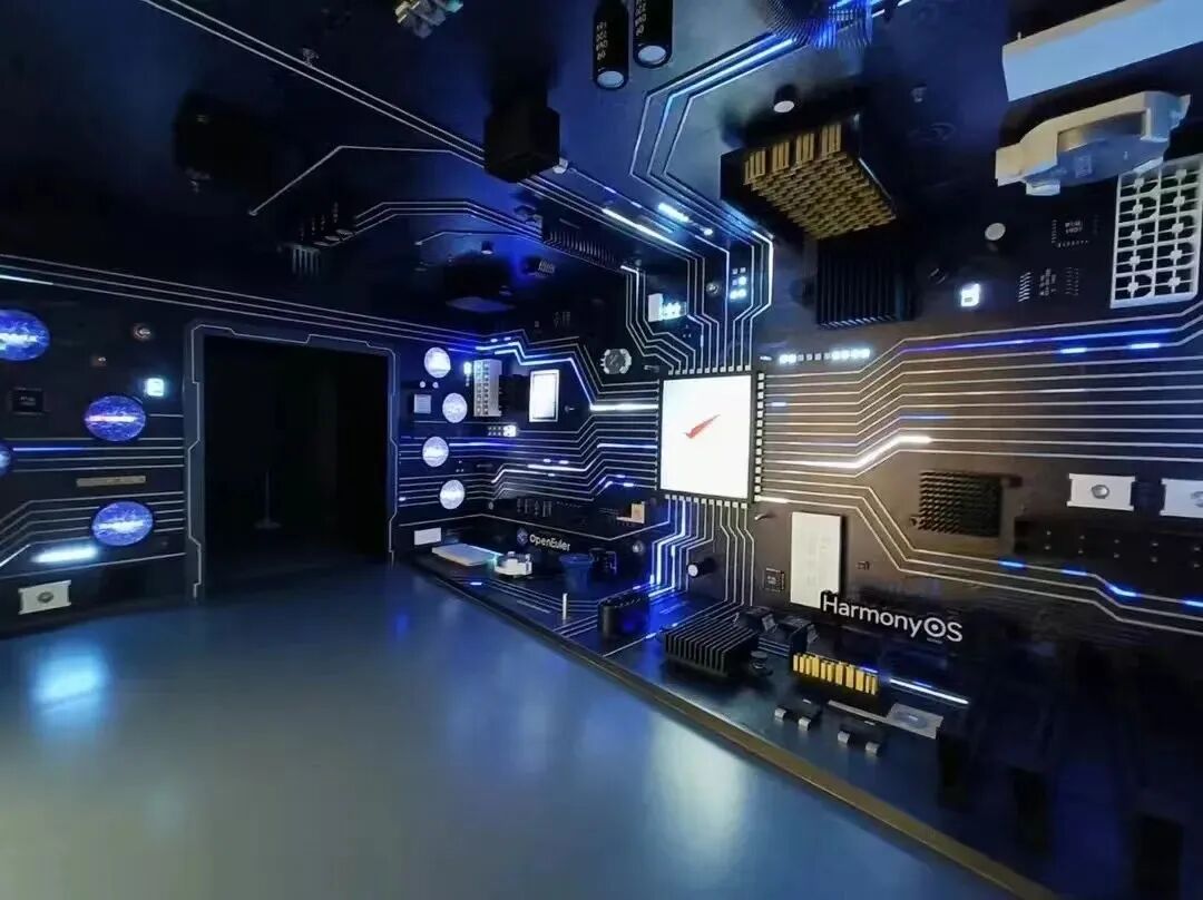 展厅讲解(14 节):国芯空间展示、5D 视频、环廊 AI 介绍、少年强 则国强视频、芯片展示、软件生态展示、智慧质检展示、智慧城市 展示、智慧农业展示、智慧能源展示、智慧医疗展示、机械臂激光 打印、智能汽车展示、服务器讲解参观。